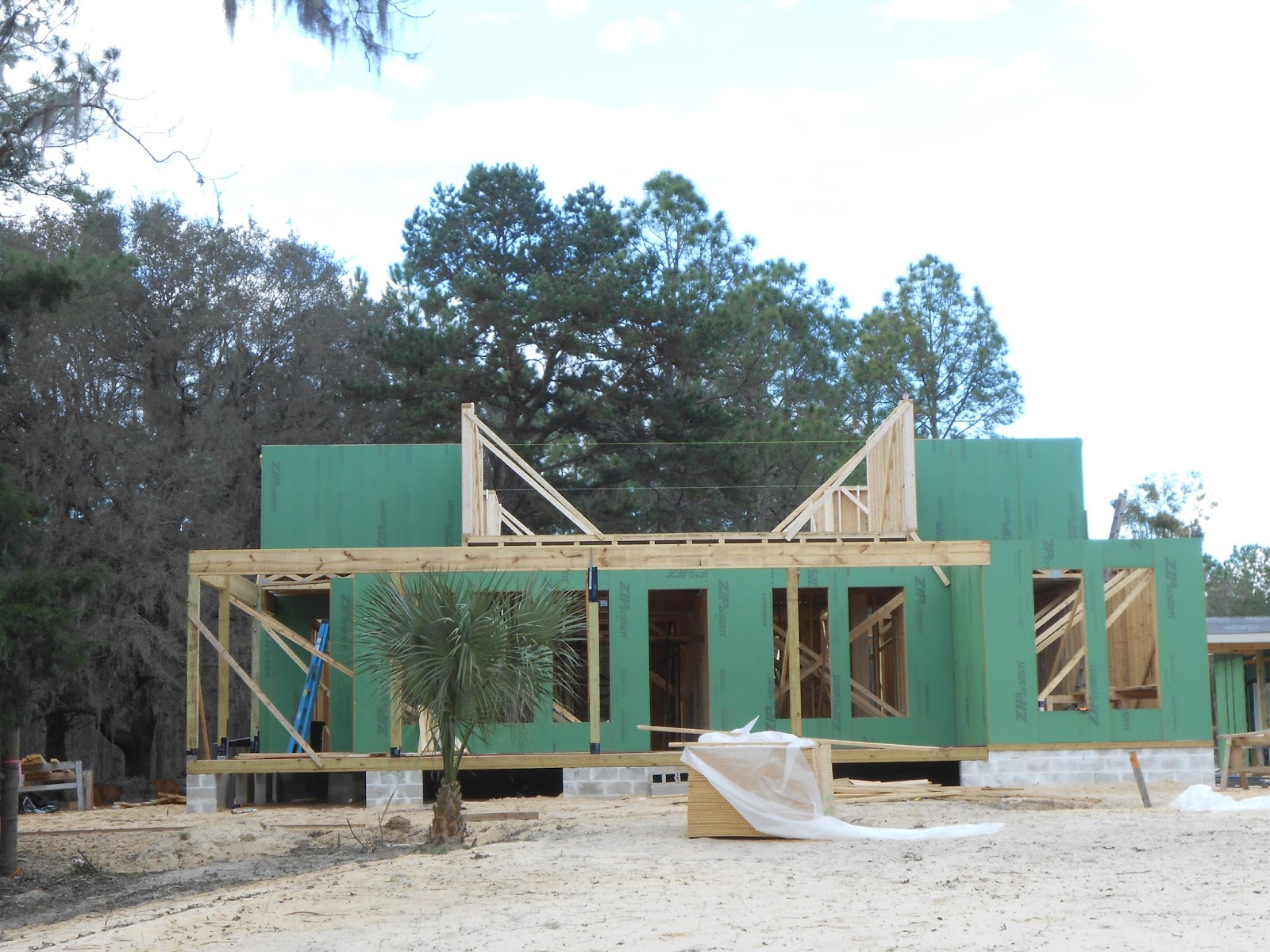 Looking at the front of the house, with the start of the second floor going up