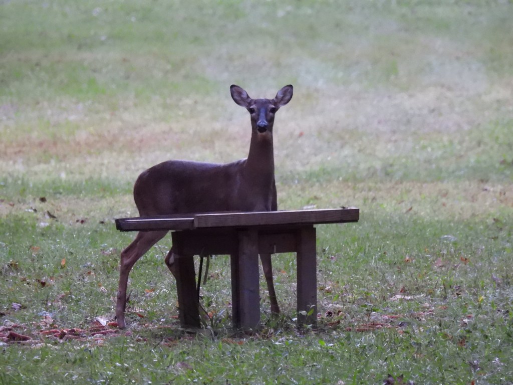Went out to the blind this morning, What a beautiful day and although it was cold I enjoyed myself. I checked on the water in the pond, We had 2.9 inches or rain over the weekend so the level was up which was good. The two pumps were working great as I could actually see the bottom of the pond for a bit of the ways. I got to only see does coming out of the woods but did get some great photos of them, When I check one of the photos, I think that there was a buck in the one, just a baby with little tiny spikes for horns.
