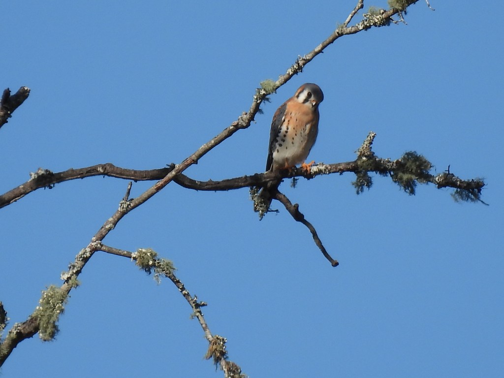 we have had a new visitor to the farm. an American Kestrel, which is a small falcon has been hanging out in the back yard flying around from tree to tree. and we have also had 6-10 Ibis visiting every night. I have enjoyed watching them.